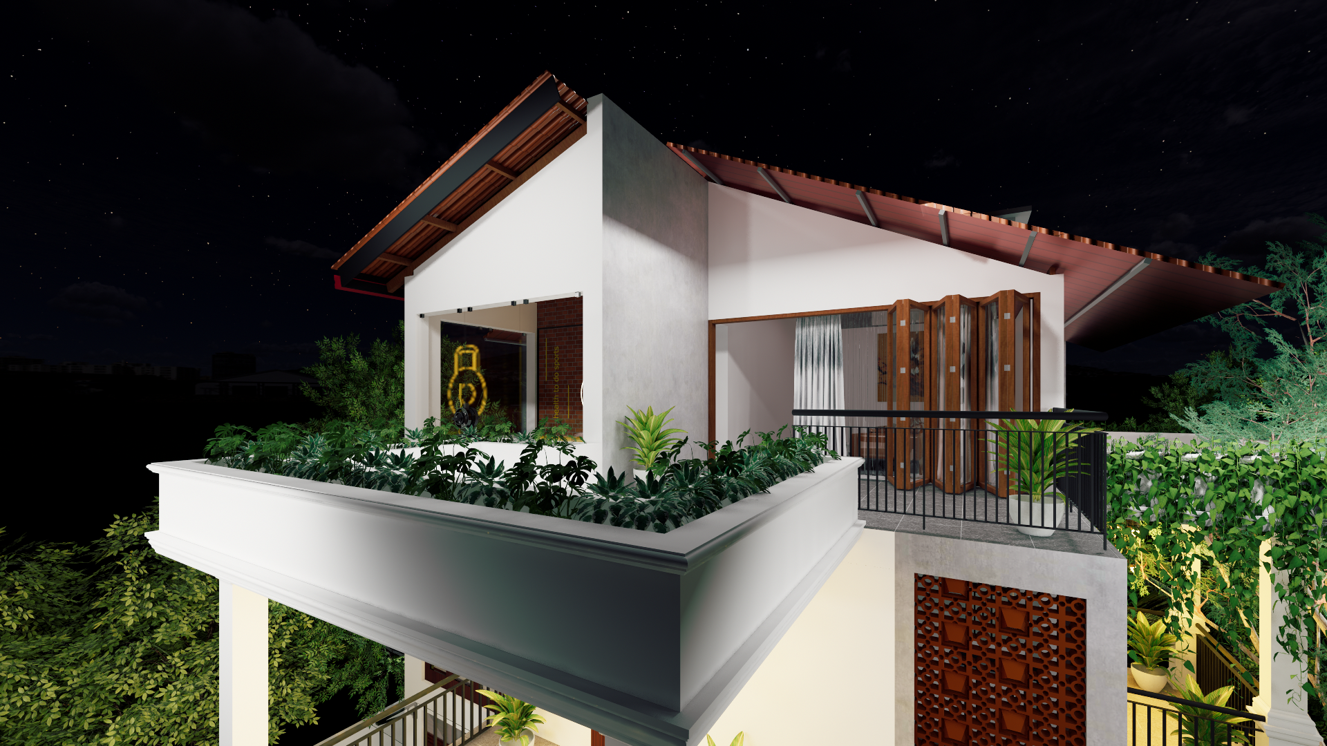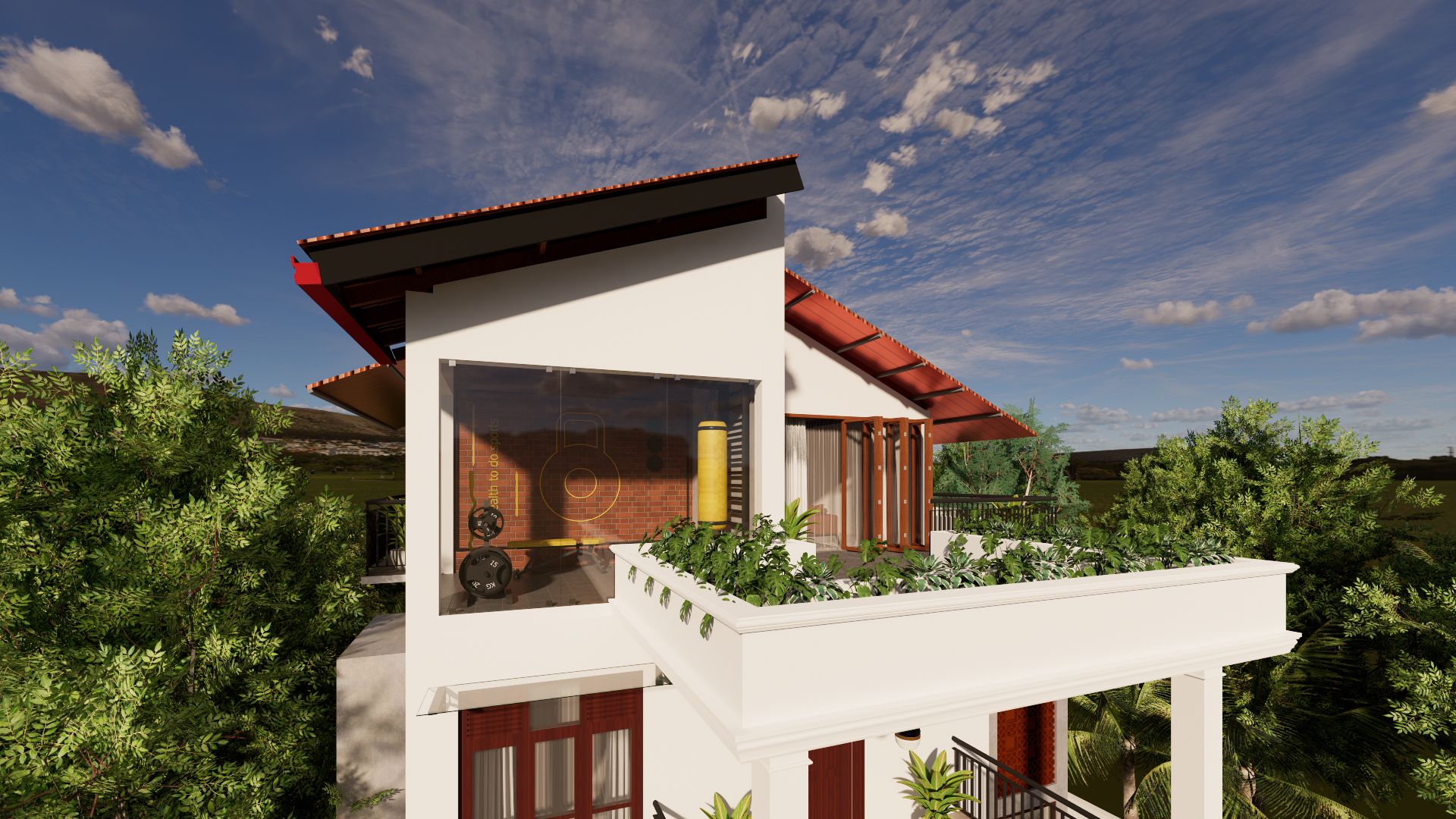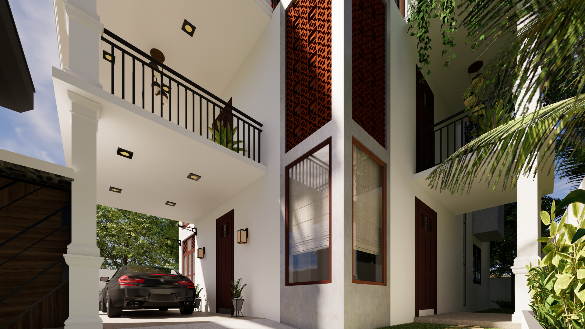 This House Project blends natural warmth with modern design elements to create a home that feels both stylish and sustainable. The architecture captures a rustic aesthetic through earthy textures and simple structural lines, while maintaining a focus on eco-friendly living and efficient space planning.Every space has been thoughtfully designed to connect with nature – from open balconies that welcome natural light to green accents that promote a refreshing and breathable environment. This 3800 sq.ft home reflects the perfect harmony between comfort, sustainability, and timeless design.